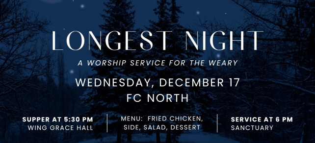 Longest Night Service December 17 | 5:30 PM Supper | 6 PM Service | FC North