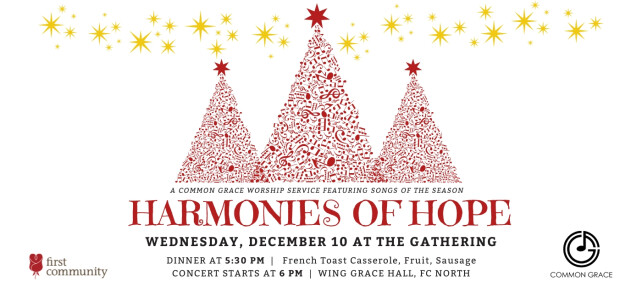 Join us for Harmonies of Hope: A Common Grace Christmas Worship Concert — a joyful evening of music, community, and celebration. This special night will feature inspiring contemporary and traditional Christmas music led by the Common Grace Band, along with a festive sing-along for all ages.